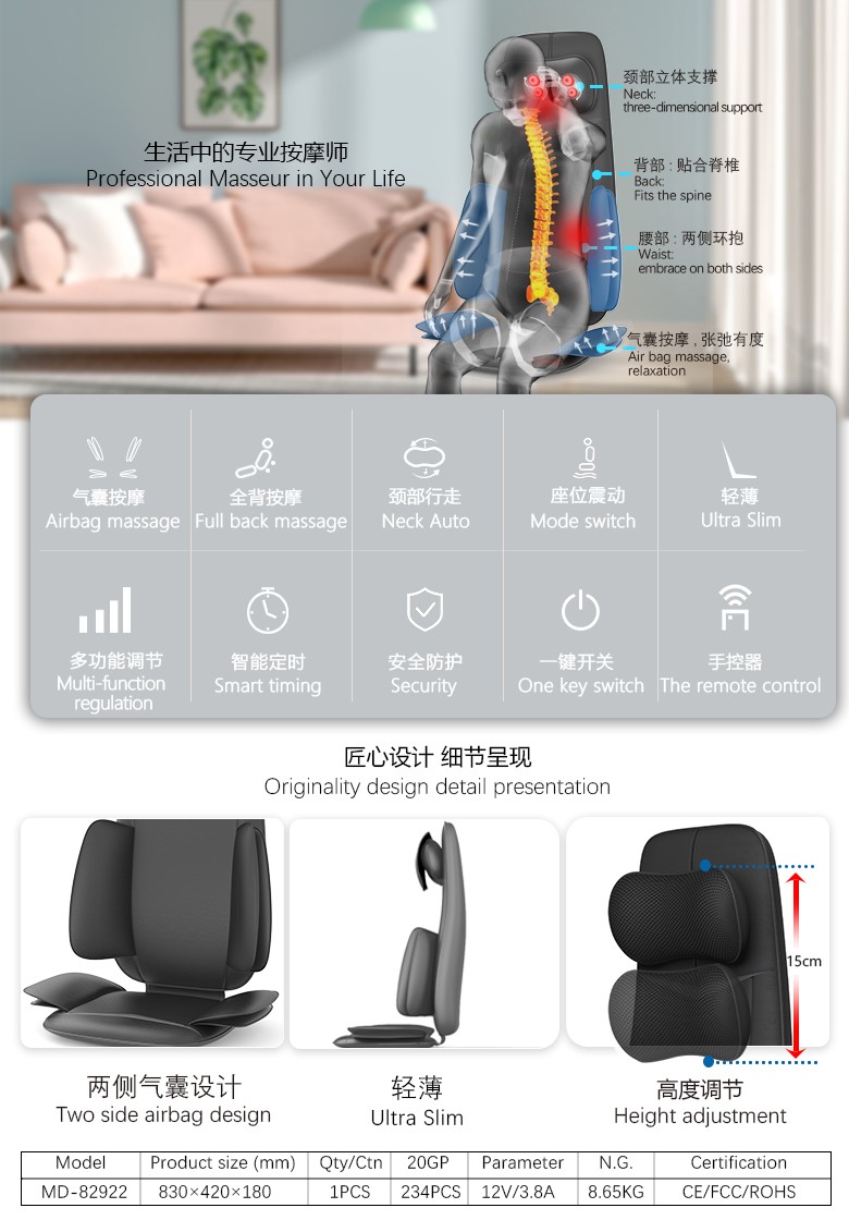 1.曲線行走機芯,符合人體工學,頸部加熱,背部加熱
