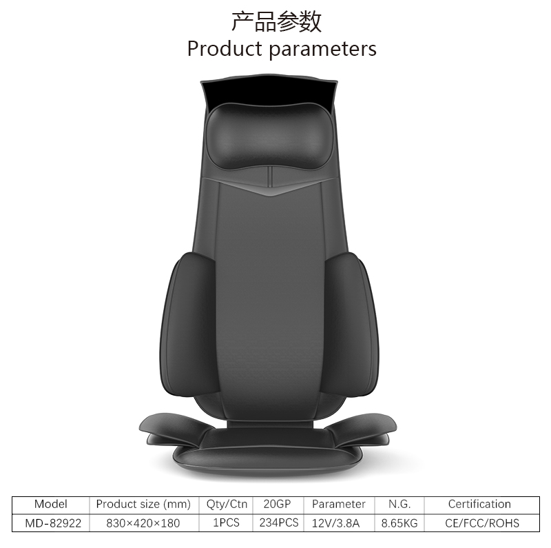 3.單電機8頭背部揉捏,普通車充,12V 5A適配器