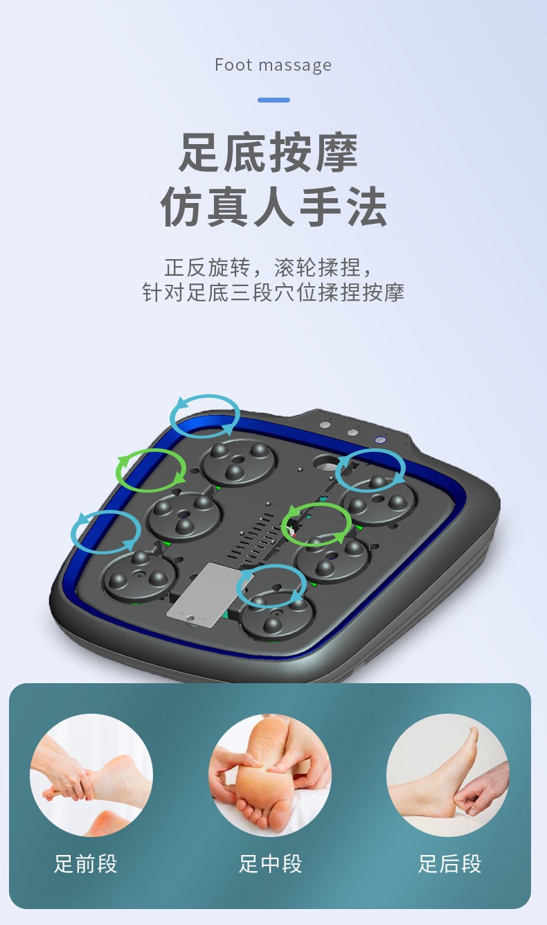 功能特征:腳底六個按摩頭,三檔力度調節,按摩頭正反轉,